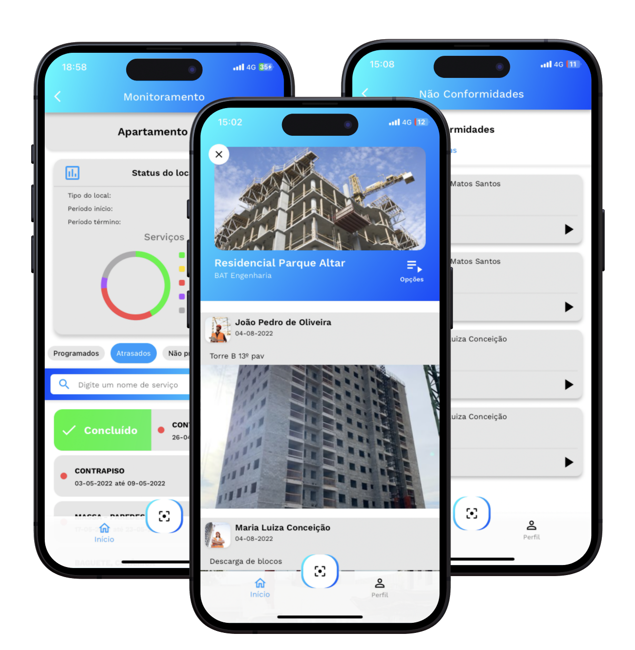 O módulo de monitoramento mantém você conectado ao progresso da obra.